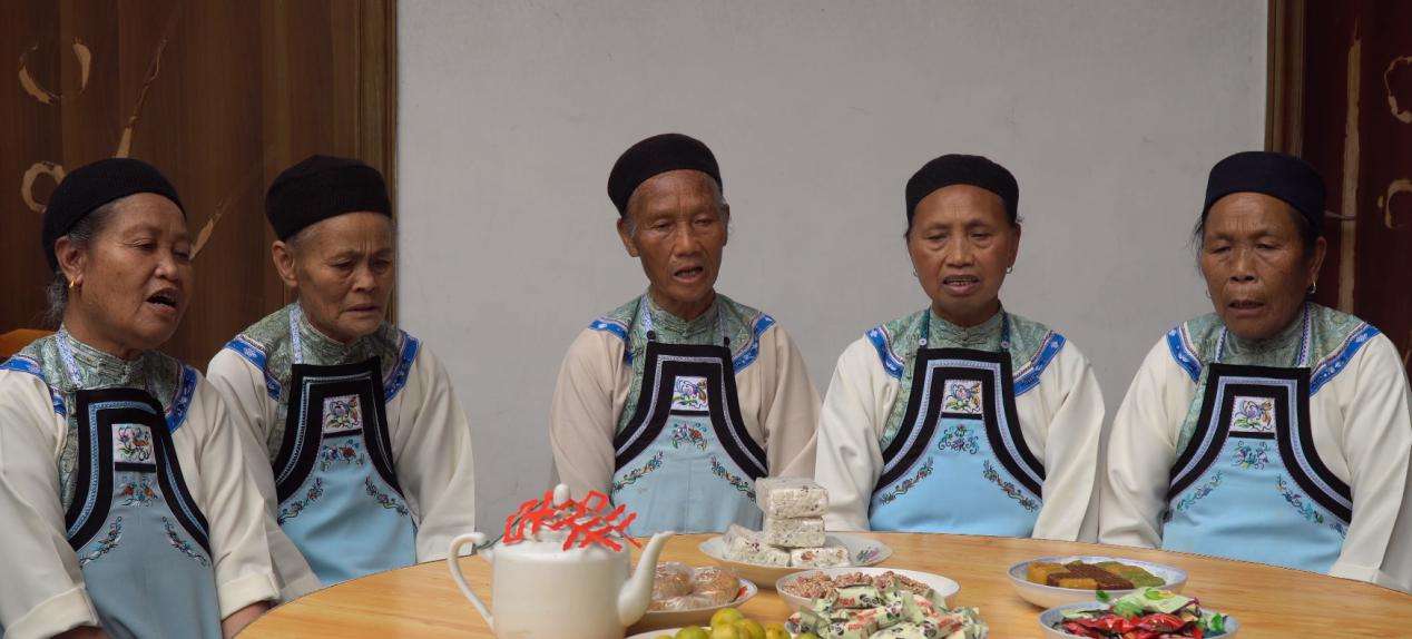 紅星村村內(nèi)布依族村民保留有布依族傳統(tǒng)服飾,在日常生活中也還有穿著布依族服飾的習(xí)慣。紅星村布依族女性服飾做工精細,款式多樣。老人頭戴黑色圓帽,上身主要穿著灰白色斜襟上衣和青藍色打底的圍腰,上衣領(lǐng)口至兩肩處繡有大面積花紋圖案,圍腰上部也繡有花紋圖案作為裝飾。圍腰上的兩條絲帶系于身后,絲帶上繡有花紋圖案。下身穿著灰色長褲。