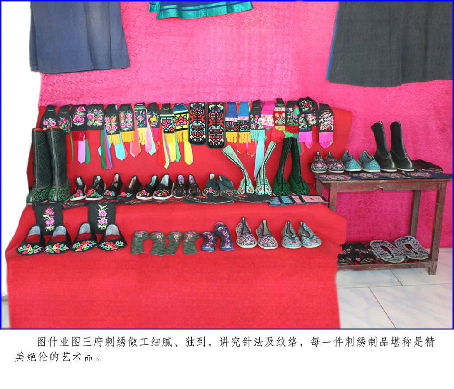 圖什業(yè)圖王府服飾包括:服裝、服飾、鞋帽及馬匹裝飾等?;蛸|樸、清新,或漂亮、華貴,或錯落有致;既有山水,又有花鳥,形象逼真,惟妙惟肖,色彩協(xié)調,圖案精美;其做工細膩獨到,講究針法及紋路,每一件服飾制品堪稱是精美別致的藝術品。
