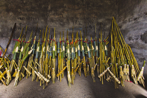 “別以為蘆笙只是一門簡單的竹制吹管樂,制作蘆笙門道多著呢!”楊枝光拿起一只蘆笙先給我講解蘆笙的構(gòu)造:蘆笙由笙斗、笙管、共鳴筒、簧屯、箍等部件組成。笙斗是木制呈葫蘆瓜狀構(gòu)建,笙斗是空的,是蘆笙的聲腔。共鳴筒則是連在笙管上的大竹筒,作用是放大聲音……