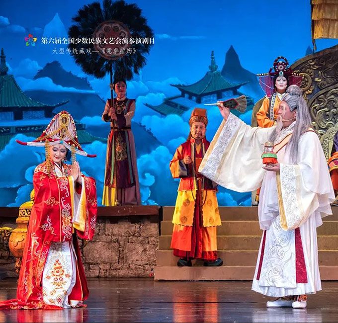 9月14日,作為第六屆全國(guó)少數(shù)民族文藝會(huì)演參演劇目,由青海省選送、青海省藏劇團(tuán)(黃南藏族自治州民族歌舞劇團(tuán))創(chuàng)作演出的藏戲《意卓拉姆》在央視網(wǎng)和國(guó)家民委門(mén)戶(hù)網(wǎng)站進(jìn)行演播。該劇講述了傳說(shuō)中的仙女意卓拉姆與人間的諾桑王子相愛(ài),歷經(jīng)挫折與磨難后終成眷屬的愛(ài)情故事,表現(xiàn)出意卓拉姆對(duì)愛(ài)情的忠貞不渝和諾桑王子堅(jiān)韌不拔的意志。