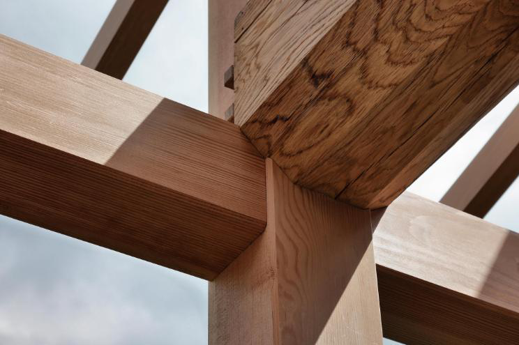另一類是作為“點(diǎn)”的結(jié)構(gòu)方法。主要用于作橫豎材丁字結(jié)合,成角結(jié)合,交叉結(jié)合,以及直材和弧形材的伸延接合。如“格肩榫”、“雙榫”、“雙夾榫”、“勾掛榫”、“鍥釘榫”、“半榫”、“通榫”等等。