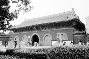梁思成后來寫道:“那高大的殿門頓時(shí)就給我們打開了。里面寬有七跨,在昏暗中顯得更加輝煌無比。在一個(gè)很大的平臺(tái)上,有一尊菩薩的坐像。它的侍者們環(huán)它而立,有如一座仙林?!睉{著學(xué)識(shí)和經(jīng)驗(yàn),梁思成斷定佛光寺大雄寶殿是唐代建筑。經(jīng)過他們的艱苦勘察考據(jù),發(fā)現(xiàn)殿內(nèi)梁架上的題記和殿前石幢上的文字都表明這座大殿建于公元9世紀(jì),終于證實(shí),這是一座唐代建筑確鑿無疑,并命名為東大殿。