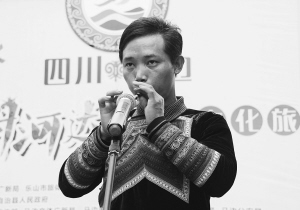 現(xiàn)年41歲的阿西日哈,是四川馬邊彝族自治縣民建鎮(zhèn)燈桿堡村的村民。這位多才多藝的彝族漢子不僅會(huì)吹奏木葉、草葉,而且精通月琴、馬布,還會(huì)吹奏葫蘆絲和笛子,可以稱(chēng)得上是一位全能樂(lè)器手。令人驚訝的是,這些樂(lè)器幾乎都是阿西日哈自學(xué)的。