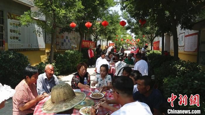 “孝善羊湯宴”將伏羊節(jié)推向高潮,當(dāng)?shù)卮迩f免費(fèi)請“孝善人家”代表等“喝伏羊”?!「逗?攝