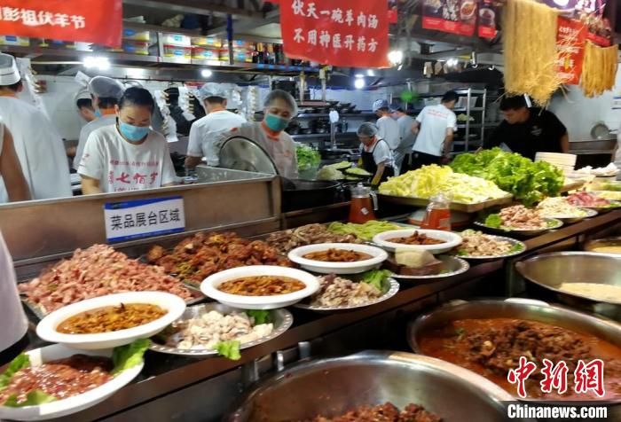 記者走訪徐州市區(qū)大街小巷發(fā)現(xiàn),各大餐館、飯店提前備足了貨源,店方更是拉起橫幅,布置花籃,紛紛推出特色伏羊菜品迎賓納客。11日中午,徐州七百歲羊肉館濱湖店店長張輝介紹,飯店在伏羊節(jié)期間預(yù)計每天要用掉大概15只羊的鮮羊肉。店內(nèi)包間、大廳空桌早在一周前就被預(yù)訂滿。當(dāng)天一早,附近很多市民就帶著鍋碗來店里打羊肉湯。中午,由于吃伏羊的客人較多,一樓大廳的餐位已經(jīng)翻臺多次?!胺蚬?jié)第一天,單獨他們這一個店面最少接待顧客50桌近600人次。