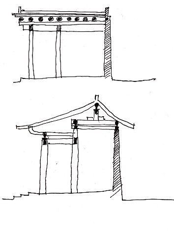 土坯墻建筑的建筑結(jié)構(gòu)主要是土坯墻和木制的柱子承重,還有一種是土坯墻和抬梁架一起承重,最后一種是土坯墻承重。土坯墻受限于自身的材料和工藝問(wèn)題,所以建筑進(jìn)深一般情況下較小。