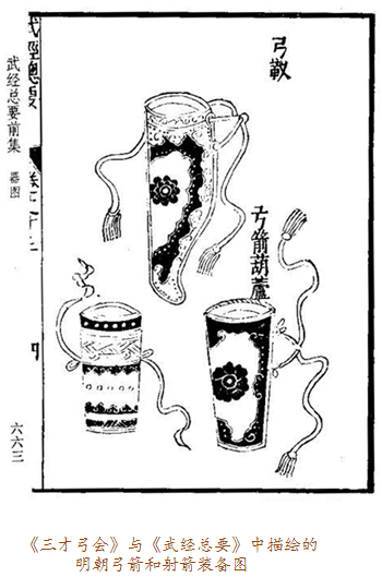 當(dāng)弓囊出現(xiàn)在眼前時(shí),我們應(yīng)當(dāng)想到它的另一半——箭囊。實(shí)事上,古代盛裝弓箭的器物被稱為櫜鞬(gāo jiàn),櫜盛箭,鞬裝弓,多以皮革制作。比如明十三陵出土的萬(wàn)歷皇帝陪葬品櫜鞬,就用皮革縫制,外敷黃色素緞,金繡龍紋,鑲嵌金飾件及各色寶石。一般來(lái)說(shuō),弓囊為上寬下窄的袋形,箭囊則為長(zhǎng)方形。在蒙古語(yǔ)中,弓囊與箭囊合稱為“撒答”。因?yàn)椤按稹迸c“袋”讀音相近,所以元代的漢族作家便在作品中將之寫(xiě)為“撒袋”。這樣,“撒袋”一詞便入了漢語(yǔ)詞匯,特指裝弓盛箭的袋子。