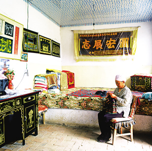 居室內(nèi)紅箱、畫柜耀人奪目,墻上掛有阿拉伯文字的對聯(lián)。屋檐下的臺(tái)階上,始終放著一個(gè)隨時(shí)洗手洗臉用的“湯瓶”,既節(jié)約又清潔。東西偏屋為晚輩居住,南邊為牲畜和草料房。東鄉(xiāng)人認(rèn)為家居四方平正,財(cái)源廣,子孫榮,門庭興旺。廚房是獨(dú)立的,砌鍋灶,有大案板,方便以面食為主的飲食習(xí)慣。