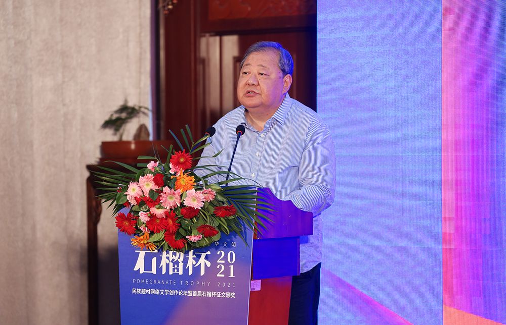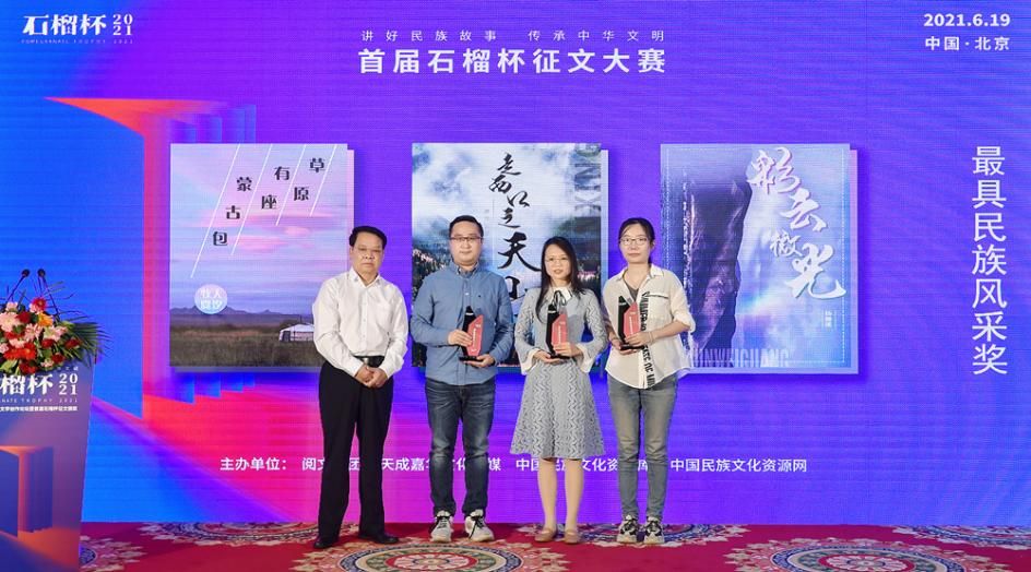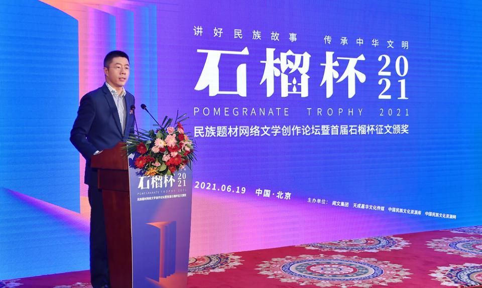 6月19日,民族題材網(wǎng)絡(luò)文學(xué)創(chuàng)作論壇暨首屆石榴杯征文大賽頒獎典禮在京舉行。作為國家民委主辦的“中華民族全家?!毕盗谢顒又唬讓檬癖魑拇筚惖玫搅藝颐裎幕麄魉竞椭袊贁?shù)民族文化藝術(shù)促進(jìn)會的指導(dǎo)與支持,由閱文集團(tuán)聯(lián)合天成嘉華文化傳媒、中國民族文化資源庫、中國民族文化資源網(wǎng)共同舉辦。本屆大賽以“講好民族故事 ,傳承中華文明”為主題,涌現(xiàn)出眾多弘揚(yáng)民族精神、表達(dá)文化自信、傳播正能量的作品。經(jīng)過專家推薦及嚴(yán)格評審,《草原有座蒙古包》、《走西口之天山行》、《彩云微光》等三部作品獲“最具民族風(fēng)采獎”,《神藏》、《歡想世界》、《爛柯棋緣》、《時光和你都很美》、《恰似寒光遇驕陽》、《黎明醫(yī)生》、《暖君》、《驚雷》、《大訟師》、《消防英雄》等十部作品獲“優(yōu)秀作品獎”。所有獲獎作品都將收錄入中國民族文化資源庫。中國作家協(xié)會副主席、書記處書記吉狄馬加表示,本屆石榴杯大賽是在黨和國家長期以來堅持的對民族文化、少數(shù)民族作家創(chuàng)作和民族題材創(chuàng)作的大力扶持下,依托網(wǎng)絡(luò)文學(xué)平臺,將文學(xué)作品與影視作品改編、游戲、動漫產(chǎn)品制作結(jié)合起來,探索的一條發(fā)展民族文化的新路,具有開創(chuàng)意義。