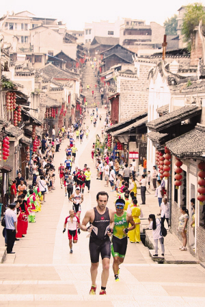 此次活動(dòng)最大的亮點(diǎn)是傳統(tǒng)古老的“非遺”文化和劃騎跑三項(xiàng)挑戰(zhàn)賽緊密結(jié)合,充分利用黎平生態(tài)資源設(shè)置比賽線路。比賽全程131.5公里,途經(jīng)德鳳、高屯、巖洞、茅貢、壩寨等5個(gè)鄉(xiāng)鎮(zhèn)(街道)。兩天時(shí)間內(nèi),選手們穿行在黎平最亮麗的精品旅游示范區(qū)域——“百里侗寨”文化體驗(yàn)走廊,穿越古木參天的森林,探秘古樸神奇的侗寨,感受清新秀麗的茶園,經(jīng)過滿載美妙愛情故事的風(fēng)雨橋,逐浪于綠如翡翠的三什江,奔跑在侗家如詩如畫的田野間,路過桂花臺(tái)、五里橋、東風(fēng)林場等多個(gè)著名景點(diǎn),在侗鄉(xiāng)黎平的多情山水和旖旎風(fēng)光中追尋健康、快樂。身著民族服裝的侗族姑娘、小伙兒,在賽事最精彩的發(fā)令、節(jié)點(diǎn)交接、終點(diǎn)沖刺階段各個(gè)環(huán)節(jié)都唱起侗族大歌助興,“掠過古夢(mèng)邊緣的旋律”讓這項(xiàng)國際性的現(xiàn)代化賽事洋溢著濃濃的“中國風(fēng)”。
