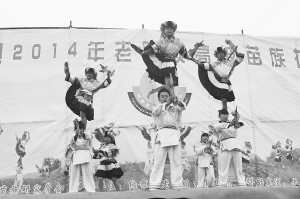 圖為當(dāng)?shù)孛缱迦罕娬谡寡輫壹?jí)非遺“滾山珠”。