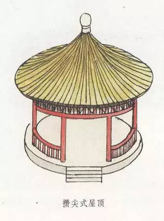 攢尖式屋頂沒有正脊,而只有垂脊,垂脊的多少根據(jù)實際建筑需要而定,一般雙數(shù)的居多,而單數(shù)的較少。如,有三條脊的、有四條脊的、有六條脊的、有八條脊的,分別稱為三角攢尖頂、四角攢尖頂、六角攢尖頂、八角攢尖頂?shù)取4送?,還有一種圓形攢尖頂式,也就是沒有垂脊。