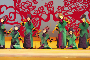 達(dá)斡爾族有語言沒有文字,然而在《神奇的達(dá)斡爾》演出現(xiàn)場,觀眾卻能夠感受到演員通過聲音和肢體語言記錄下來的活的文字,并且重新思考非物質(zhì)文化遺產(chǎn)的意義所在。近兩個小時的演出,觀眾對達(dá)斡爾族的非物質(zhì)文化遺產(chǎn)有了直觀的感受:達(dá)斡爾族搖籃,它的制式體現(xiàn)了達(dá)斡爾人對生命的思考和對自然的尊重;哈尼卡,達(dá)斡爾族傳統(tǒng)的剪紙藝術(shù),伴隨著金色的童年,充實(shí)著達(dá)斡爾人色彩斑斕的心靈世界;達(dá)斡爾族頸力賽,勞動之余一項(xiàng)普及性民間傳統(tǒng)體育競技運(yùn)動,給人們平常的生活帶來無窮的樂趣——它們,都于2007年被列入第一批內(nèi)蒙古自治區(qū)非物質(zhì)文化遺產(chǎn)保護(hù)名錄。不僅如此,曲棍球(達(dá)斡爾語為“波依闊”,達(dá)斡爾族人喜愛的民間傳統(tǒng)體育項(xiàng)目)、魯日格勒(達(dá)斡爾族民間舞蹈,多表現(xiàn)狩獵生活和勞動場面)、烏春(達(dá)斡爾族特有的說唱藝術(shù))還被列入第一批國家級非物質(zhì)文化遺產(chǎn)保護(hù)名錄。