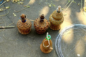 傣族竹編歷史悠久,制作精美,品種豐富,它與傣族人家生活息息相關(guān),是了解傣族文化不能缺少的一部分。對于傣族竹編來講,以編織工藝不同,可以把傣族竹編分為薄篾層編織出平面圖形的平面竹編;用橫截面為矩形的竹絲編織立體造型的立體竹編;將平面竹編和立體竹編編織工藝糅合在一起,編制成既有平面質(zhì)感又有立體形狀的混合竹編。傣族竹編是藝術(shù)創(chuàng)作和藝術(shù)再創(chuàng)作,竹編工藝品可分為粗絲工藝品和細(xì)絲工藝品。粗絲竹編工藝品主要有茶杯、糖缸、飯盒、檳榔盒、茶葉罐等,細(xì)絲竹編工藝品主要有竹包手袋、挎包和帽子等,它們集實用和觀賞性于一體。例如傣族的“芭蘿”,“芭蘿”是傣族,是一種掛在腰間的竹簍?!鞍盘}”編織精巧,美觀實用,不僅是生產(chǎn)、生活用具,還是精致的裝飾品,還是傣族青年表達(dá)愛情的傳遞物。
