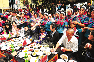 “中國紅河·元陽2009年哈尼梯田文化旅游節(jié)”上,哈尼族群眾擺下360桌、近0.5公里長的哈尼族長街宴,用最隆重的禮儀和風(fēng)味美食,迎接來自海內(nèi)外的賓客。