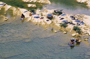 女人在潺潺溪流的大青石上晾好衣裙后,會(huì)在溪水中嬉戲
