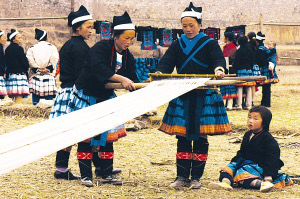 晾曬盛景。白褲瑤女人衣上的神秘之藍(lán),就是這樣經(jīng)過蠟染晾曬而成的