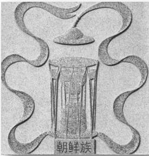 長(zhǎng)鼓是朝鮮族最有特色的民間樂(lè)器。長(zhǎng)鼓也稱(chēng)杖鼓、兩杖鼓,是古代細(xì)腰鼓的變體。長(zhǎng)鼓的鼓身由木制作,呈圓筒形,外形兩端粗而中間空,長(zhǎng)度為70-80厘米左右。演奏時(shí)用右手持槌敲擊鼓面,左手拇指放在鼓框邊,用其余四指拍擊鼓面,演奏技巧豐富多變。長(zhǎng)鼓、象帽共同組成的圖案構(gòu)成了長(zhǎng)白山天池輪廓,表現(xiàn)了朝鮮族擅長(zhǎng)歌舞的民族特點(diǎn)和團(tuán)結(jié)奮進(jìn)、樂(lè)觀(guān)開(kāi)放的精神品格。