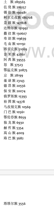 我國55個少數(shù)民族中,有22個少數(shù)民族人口在 10萬以下,他們被統(tǒng)稱為人口較少民族,總?cè)丝?3萬。這22個人口較少民族分別是:毛南族、撒拉族、布朗族、塔吉克族、阿昌族、普米族、鄂溫克族、怒族、京族、基諾族、德昂族、保安族、俄羅斯族、裕固族、烏孜別克族、門巴族、鄂倫春族、獨龍族、塔塔爾族、赫哲族、高山族、珞巴族。他們主要分布于內(nèi)蒙古、黑龍江、福建、廣西、貴州、云南、西藏、甘肅、青海、新疆10個省(區(qū))。