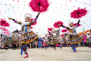 “打同年”是融水縣苗、侗和瑤等少數(shù)民族的文化傳統(tǒng),一般是村與村之間相約在春節(jié)期間進(jìn)行,聯(lián)誼雙方互稱“同年”。整個(gè)活動(dòng)一般持續(xù)三天,包括進(jìn)寨儀式、蘆笙聯(lián)歡、圍同年儀式、聯(lián)歡晚會(huì)、百家宴等。雙方通過吹蘆笙、跳蘆笙舞、對歌等多種傳統(tǒng)方式聯(lián)歡,增進(jìn)交往交流交融。