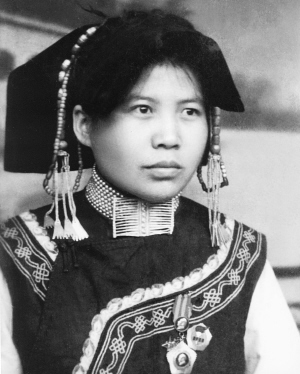 開會那天,阿角走進(jìn)中南海懷仁堂,她被安排在8排20號正對著主席臺的位置。她遠(yuǎn)遠(yuǎn)地看見毛澤東、周恩來等中央領(lǐng)導(dǎo)人向代表們揮手致意時,心怦怦直跳,她不敢相信眼前的那一切,沒有想到自己能夠親眼見到給中國人民帶來自由和幸福的毛主席,沒有想到可以看見一直深受中國人民愛戴的周總理。就在離大會開始還有20分鐘時,廣播里突然傳出了“阿角同志,請你上主席臺”的話語。