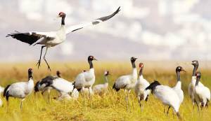 次日清晨,當?shù)谝豢|陽光開始譜寫草原晨曲時,橘紅色的天際開始展現(xiàn)云彩的舞蹈,為黑頸鶴的亮翅布置了最美的舞臺背景;新鮮的空氣散播著白露的味道,也喚醒了草原的主人,喚醒了我們……