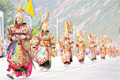 街頭巡游的格薩爾藏戲方隊