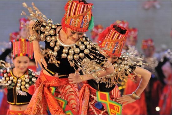 目瑙縱歌節(jié)是景頗族最盛大的傳統(tǒng)節(jié)日。節(jié)日當(dāng)天,人們身著艷麗的民族服裝相聚一堂,人數(shù)少則上千,多則過萬,大家踩著同一個鼓點(diǎn)起舞,規(guī)模宏大,有“天堂之舞”“萬人狂歡舞”的美稱。