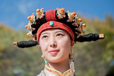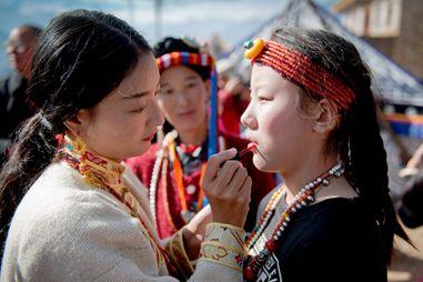 丹巴女子的成人禮(成年儀式)有著久遠(yuǎn)的歷史,也是一項(xiàng)傳統(tǒng)的選美、賽美活動(dòng)。成人禮一般以自然村落為單位,由活佛或者吉祥老人選擇吉日或是農(nóng)閑時(shí)間舉行。成人禮在藏語(yǔ)中稱為“幾薩”,是“穿成年新裝”的意思。當(dāng)?shù)貪h語(yǔ)又叫“戴角角”,意指行成人禮的女孩要梳扎像牛角一樣的發(fā)束,造型奇巧別致。小女孩長(zhǎng)到16歲行過成年禮之后才算長(zhǎng)大成人,才能夠戀愛結(jié)婚。所以,成人禮對(duì)每一個(gè)嘉絨姑娘來說都是人生歷程中的一件大事。嘉絨藏族非常重視對(duì)后代的教育,女人是部族的靈魂。所以女子成人禮充分體現(xiàn)嘉絨藏族關(guān)愛后輩、尊重女性的民間習(xí)俗,具有強(qiáng)烈的地域特色,顯現(xiàn)出鮮明的個(gè)性特點(diǎn)和母系氏族社會(huì)文化的基因。