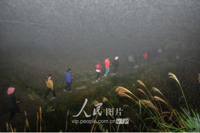 新娘之所以“不落夫家”,一是仍要報(bào)答父母的養(yǎng)育之恩;二是舍不得童年伙伴,還要回到寨子里與伙伴們伴做伴,最長可達(dá)三年之久;直到同伴都有了對(duì)象才分散,新娘方到新郎家長住下去,這樣的奇趣婚俗也在黔東南的一些侗族地區(qū)一直得以保存下來。圖為11月17日凌晨,新郎家派來的娶親隊(duì)伍點(diǎn)著火把前來娶親。