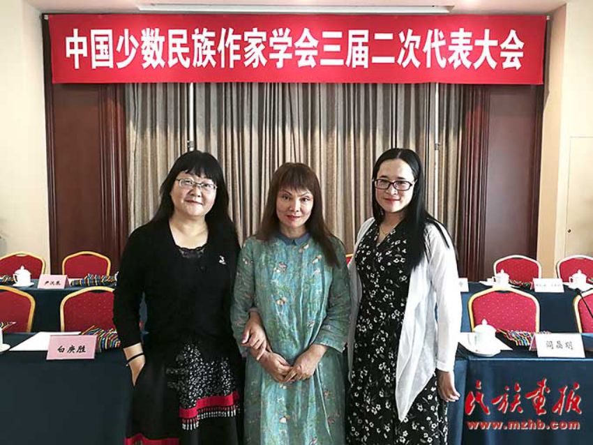 帕蒂古麗(中)出席中國少數(shù)民族作家學會第三屆二次代表大會