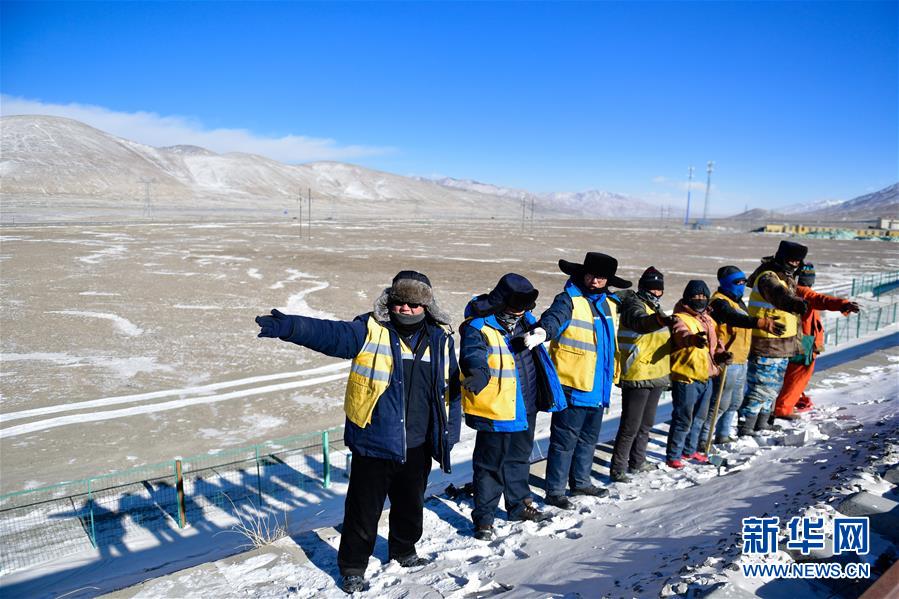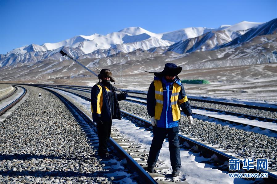 1月11日,中國鐵路青藏集團(tuán)有限公司格爾木工務(wù)段望昆線路車間的于本蕃(右一)和