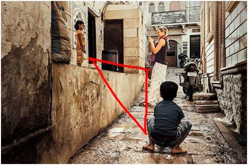 所以,畫面中的三角形關(guān)系安排是否得當,對于畫面的平衡和協(xié)調(diào)是非常重要。安排得當,畫面會看起來很舒服,主次關(guān)系、呼應(yīng)關(guān)系也非常清晰。