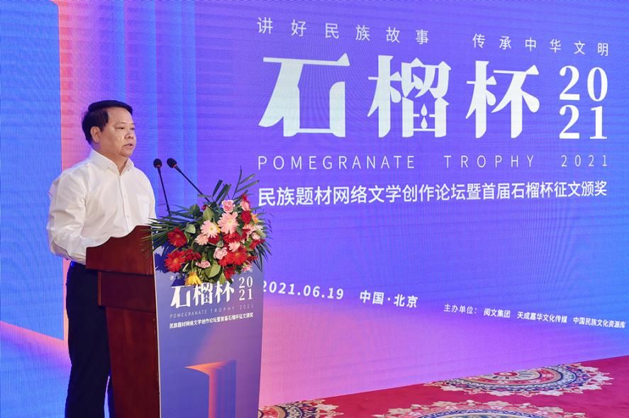 6月19日,民族題材網(wǎng)絡(luò)文學(xué)創(chuàng)作論壇暨首屆石榴杯征文大賽頒獎典禮在京舉行。作為國家民委主辦的“中華民族全家?!毕盗谢顒又唬讓檬癖魑拇筚惖玫搅藝颐裎幕麄魉竞椭袊贁?shù)民族文化藝術(shù)促進會的指導(dǎo)與支持,由閱文集團聯(lián)合天成嘉華文化傳媒、中國民族文化資源庫、中國民族文化資源網(wǎng)共同舉辦。本屆大賽以“講好民族故事 ,傳承中華文明”為主題,涌現(xiàn)出眾多弘揚民族精神、表達文化自信、傳播正能量的作品。經(jīng)過專家推薦及嚴格評審,《草原有座蒙古包》、《走西口之天山行》、《彩云微光》等三部作品獲“最具民族風(fēng)采獎”,《神藏》、《歡想世界》、《爛柯棋緣》、《時光和你都很美》、《恰似寒光遇驕陽》、《黎明醫(yī)生》、《暖君》、《驚雷》、《大訟師》、《消防英雄》等十部作品獲“優(yōu)秀作品獎”。所有獲獎作品都將收錄入中國民族文化資源庫。中國作家協(xié)會副主席、書記處書記吉狄馬加表示,本屆石榴杯大賽是在黨和國家長期以來堅持的對民族文化、少數(shù)民族作家創(chuàng)作和民族題材創(chuàng)作的大力扶持下,依托網(wǎng)絡(luò)文學(xué)平臺,將文學(xué)作品與影視作品改編、游戲、動漫產(chǎn)品制作結(jié)合起來,探索的一條發(fā)展民族文化的新路,具有開創(chuàng)意義。
