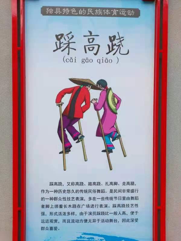 踩高蹺,又稱高蹺、踏高蹺、扎高腳、走高腿,作為一種歷史悠久的傳統(tǒng)民俗舞蹈。是民間非常盛行的一種群眾性技藝表演,多在一些傳統(tǒng)節(jié)日里由舞蹈者腳上綁著長木蹺在廣場(chǎng)進(jìn)行表演。踩高蹺技藝性強(qiáng),形式活潑多樣,由于演員踩蹺比一 般人高,便于遠(yuǎn)近觀賞,而且流動(dòng)方便無異于活動(dòng)舞臺(tái),因此深受群眾喜愛。