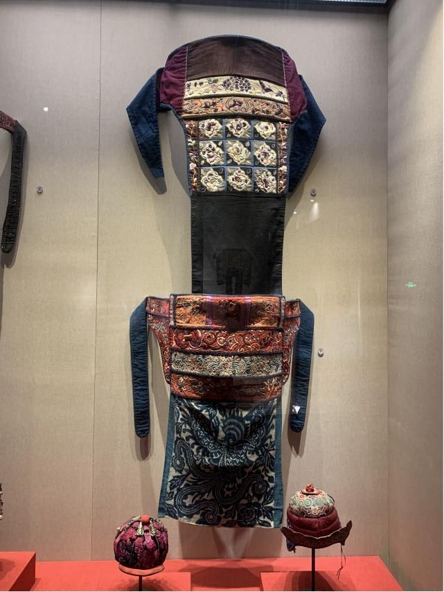 嬰孩的背扇和童帽(許覬佳攝于貴州省民族博物館)