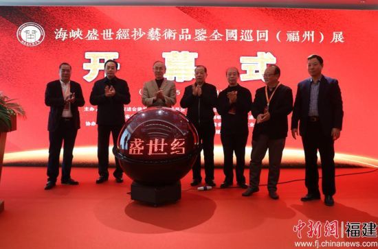 25日上午,以“紹承傳統(tǒng)、弘裕國(guó)學(xué)”為主旨的海峽盛世經(jīng)抄藝術(shù)品鑒全國(guó)巡回(福州)展在福州揭幕。