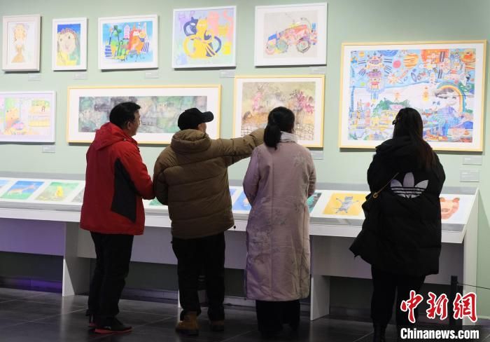 參展的少兒畫作(局部) 白祖偕 攝