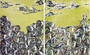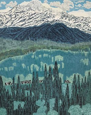 《天山腳下新牧場(chǎng)》呂劍利 版畫 73cm×93cm 全國(guó)版畫展展出作品