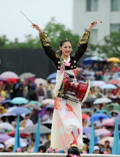 古代的長鼓,用獐皮做左邊的厚鼓皮,用狗皮做右邊的薄鼓皮,鼓筒采用木材或多層紙、薄鐵等材料制成。長鼓有沙市6個銅制的龍頭形鉤子,鉤住松緊繩.松緊繩用三股真絲線制成,每只鼓上裝有8全套袖,即用來調(diào)整鼓繩的皮套。長鼓起源于我國的宋代,后來流傳到朝鮮半島,成為朝鮮民族音樂的主要打擊樂器。我國東北朝鮮族聚居的地方,長鼓在朝鮮族音樂和舞蹈中起重要作用。長鼓的右邊用一根飾彩穗的竹條敲,左邊用手,右邊聲高左邊聲低,能敲擊出豐富多彩的節(jié)奏,著名的朝鮮族長鼓,在全世界聞名,藝術(shù)水平相當高,真正代表了能歌善舞的朝鮮民族的藝術(shù)特色。