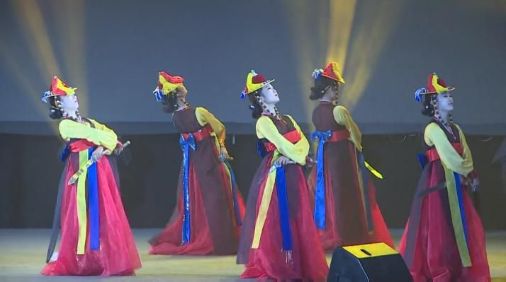 關(guān)于刀舞的由來,也有一段令人神往的傳說。新羅國有位名叫黃昌郎的壯士,7歲的時(shí)候就能揮舞長劍表演,氣勢(shì)如虹。他一人來到百濟(jì)市舞劍,觀眾圍得里三層外三層,深深為他的劍術(shù)所吸引。百濟(jì)王聽說以后,召黃昌郎入宮表演。黃昌郎借舞劍之機(jī),刺殺百濟(jì)王,結(jié)果最終被人殺害。新羅國的人民為了緬懷黃昌郎的義舉,面帶假面具,手持折半的刀,照他從前表演的舞姿跳舞。刀舞于是由此而來。刀舞與劍舞一樣,雄壯、勇猛、躍動(dòng)的舞姿貫穿舞蹈的全過程。刀舞有很強(qiáng)的隨意性,沒有統(tǒng)一的套路,舞者的基本動(dòng)作合著打擊樂節(jié)奏可隨意發(fā)揮。舞蹈反映了朝鮮族人民勇敢、大膽、智慧、樂觀的民族氣概。舞蹈姿勢(shì)剛?cè)嵯酀?jì),激舒并存,急緩相容,像疾風(fēng)般的向前沖,左右猛刺,輕快猛移等動(dòng)作,“喀嚓”、“喀嚓”的揮刀聲以及浪漫的舞態(tài),給人以強(qiáng)烈的號(hào)召感,體現(xiàn)了朝鮮族舞蹈的高超技藝。