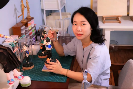 讓人驚艷的,還原度無比高的作品人物服飾,這其中還有冰冰媽媽的一些的建議呢,雕雕琢琢,便有了生動形象的這些精致作品。聊起整個創(chuàng)作過程的冰冰,笑盈盈地說:創(chuàng)作粘土惠女作品,是一件讓我感到滿足和幸福的事情。之后也會持續(xù)創(chuàng)新,精益求精地進行創(chuàng)作。