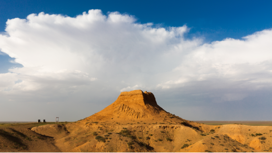 (東紅烽火臺(tái),位于海南區(qū)巴音陶亥鎮(zhèn)東紅村,整體為紅黏土夯筑而成,現(xiàn)高9.3米)