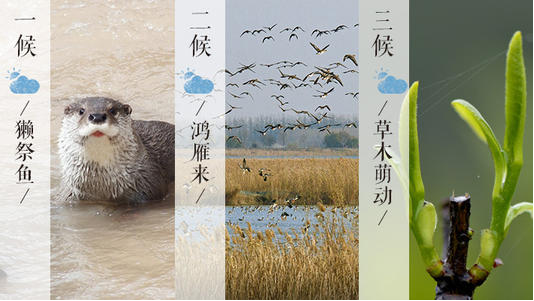 我國古代將雨水分為三候:“一候獺祭魚,二候鴻雁來,三候草木萌動。” 此節(jié)氣,水獺開始捕魚了,人們將魚擺在岸邊先祭祀后食用;五天過后,大雁開始從南方飛回北方;再過五天,在“潤物細無聲”的春雨中,草木因地中陽氣的上騰而開始抽出嫩芽。從此,大地漸漸開始呈現(xiàn)出一派欣欣向榮的景象。