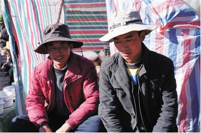 賣木碗的是兩兄弟,哥哥查司今年41歲,弟弟普布次仁30歲,木碗的制作工藝是他們家一代一代傳下來的。在他們的攤位上,除了“鎮(zhèn)店之寶”——那只大型木碗外,還擺滿了各種規(guī)格的木碗,均只涂了一層清漆,加上木碗本身的顏色,在陽光下熠熠發(fā)光。有趣的是,兩只大小規(guī)格完全相同的木碗,價格卻有天壤之別,一只要賣1000元,一只只賣500元。將兩只碗拿過來仔細看,便宜的那只非常光滑,只有一種純粹的顏色,貴的那只看起來有許許多多的小坑和斑點。據(jù)介紹,這些斑點和小坑,都是木材本身的紋理,價格也正是貴在這里。