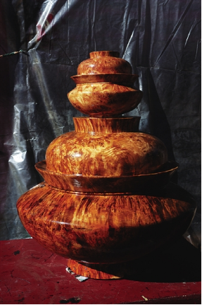 官員們使用的木碗,固然也非常注重外面的金銀寶石包裹,而木碗本身,也有一套非常固定的學問,盛開水不裂,摔到地上不會破,不燙手不冰手,體輕而質(zhì)固,經(jīng)久耐用,可以爺孫相傳。用這種碗盛食,可以完全保持食物原味,吃酥油糌粑等油肉類食品猶為適宜。比之于一般瓷碗,是碗中上品。這種木碗一般都是選用一些稀有雜木的節(jié)或者根雕琢而成,除了材料本身,在加工過程中的工序也十分重要,必須要加工出來一些獨特的花紋,比如磷火紋,或豬鬃紋,或貓頭鷹眼紋等,有這種花紋的碗,就要格外名貴,比如這次普布次仁兄弟所制作的大型核桃木碗,全身均勻地布滿了貓頭鷹眼紋,所以才能賣出這么高的價格。在西藏很多地區(qū),都流傳著這樣一個諺語:“一只上等木碗等于10頭牦牛?!?/p>