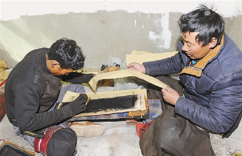 用傳統(tǒng)手工藝印刷經(jīng)書(shū)。