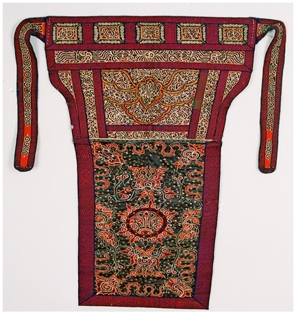 珍藏于民族文化宮博物館的這件水族馬尾繡背兒帶,是水族婦女背負兒童的工具,于20世紀80年代征集于貴州...