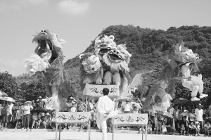 獅子是漢代張騫出使西域后,將其與孔雀等一同帶回的。由于體型威武,自古以來民間都把獅子當(dāng)成威猛與吉祥的象征,人們認(rèn)為舞獅可以驅(qū)邪避災(zāi),故每逢喜慶節(jié)日都喜歡扮成獅子,在鑼鼓的伴奏下做出各種形態(tài)來助興。久而久之,舞獅成為民間活動中不可或缺的傳統(tǒng)表演節(jié)目。
