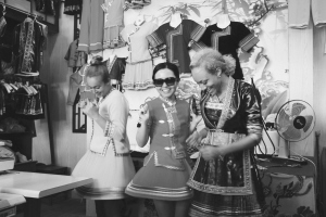 8月28日,“中美大學(xué)生聯(lián)合體驗(yàn)長征之旅”大型活動(dòng)走進(jìn)貴州黎平古城。來自美國漢普頓大學(xué)的女大學(xué)生們,被古城翹街民族服飾店里的侗族服飾深深吸引住了,她們紛紛試穿侗族服飾,并頻頻留影,還各自買下一套侗族夏裝,像侗家姑娘一樣,把侗族的藝術(shù)和文化穿戴在身上。圖為美國女大學(xué)生穿著侗族服飾跳起舞來。